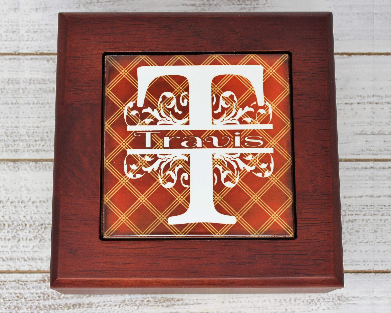 Personalized Coasters | Custom Stone Coaster Set | Faux Wood Burgundy | Set of 4